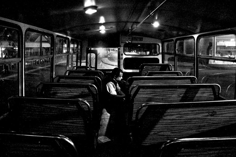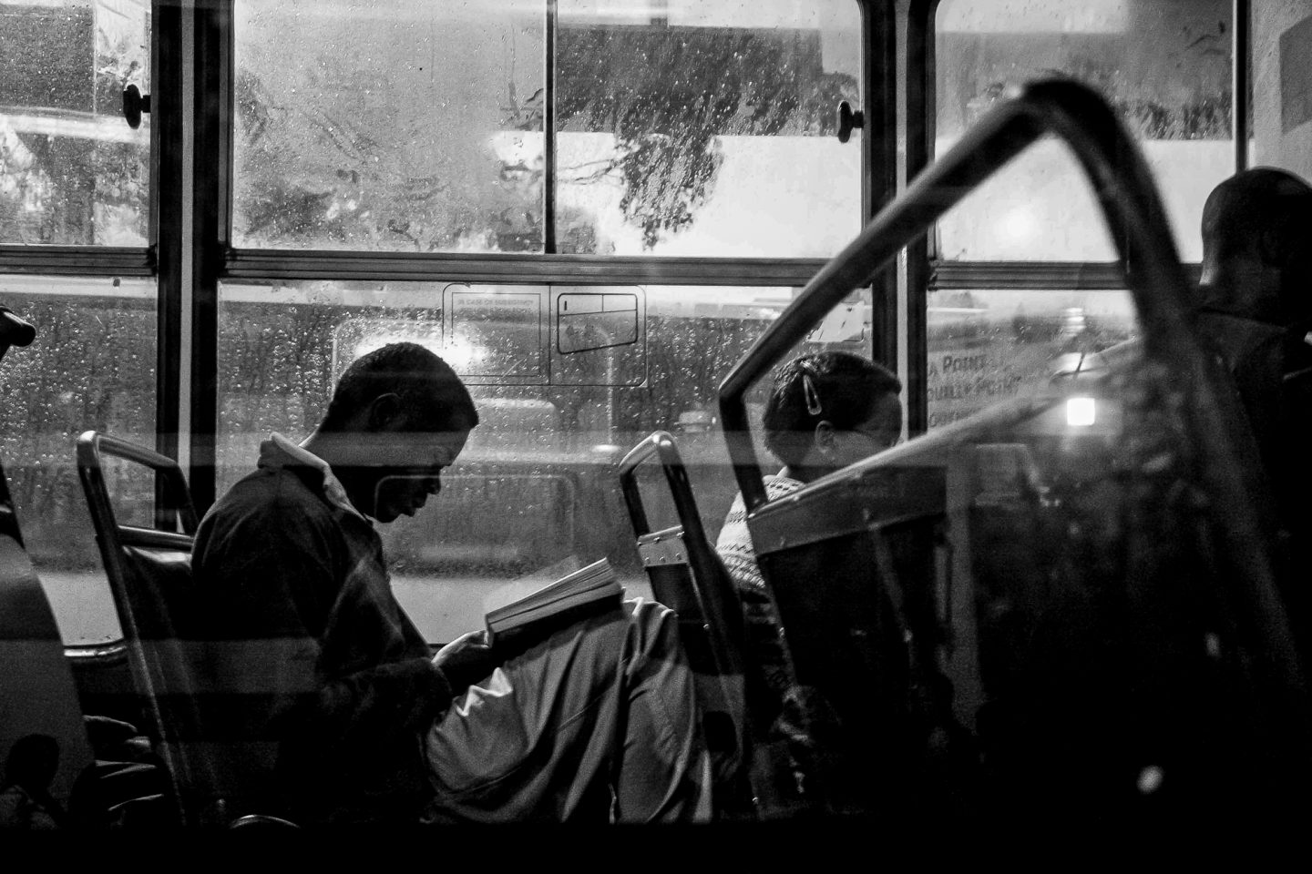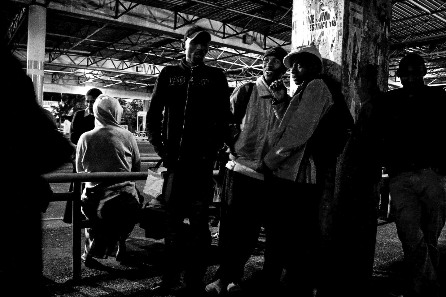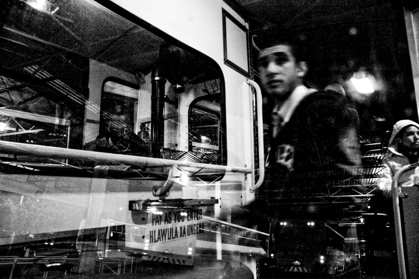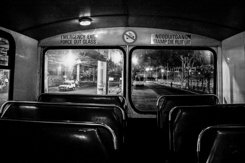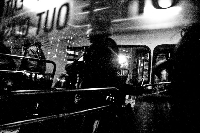 The Cape Town bus terminus is a place of flux. It is the core point of workers into the city and out to the suburbs on a daily and nightly basis. Hundreds, if not thousands, of commuters travel from the township areas around Cape Town to come to work in the city. In peak hour traffic, this takes a while, resulting in people having to travel in the early hours of the morning to make it to work on time. They arrive before the full light of day, often catching the bus home again only after dark. The atmosphere in the dusk hours and again in the hours before the intense activity of the day, is empty and dark, though alive with commuters who only have this limited transit time to relax, to read their papers and to spend thinking. The long hours of a day’s work go by and again the busses are filled going home, causing a recurring cycle again and again, each and every day. This photo essay documents these hours.